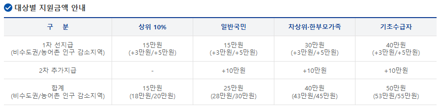 | 지급 금액 | 1인 약 25~50만 원 / 가구별 상이 |