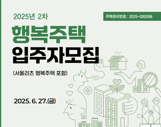 서울에서 신축 아파트에 저렴하게 거주할 수 있는 기회가 찾아왔습니다. 서울주택도시공사(SH)가 진행하는 2025년 2차 행복주택 모집공고를 통해 무주택자에게 서울 신축 대단지 임대주택에 거주할 수 있는 기회를 제공합니다.