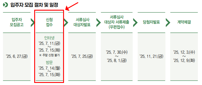 - 청약 신청기간: 2025년 7월 11일(금) ~ 7월 15일(화) ※ 주말 제외